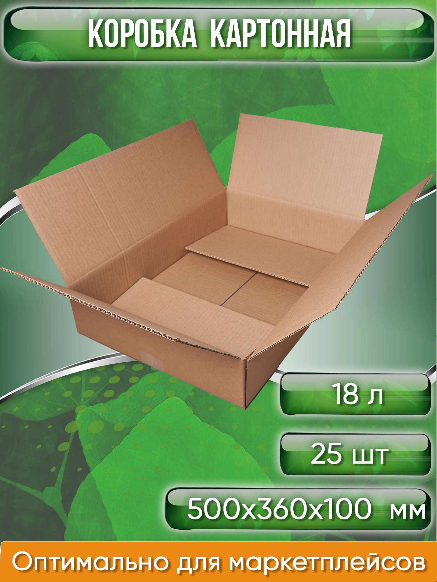 —Коробка картонная, 50х36х10 см, объем 18 л, 25 шт. (Гофрокороб, 500х360х100мм )