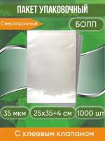 Пакет упаковочный БОПП с клеевым клапаном, 25х35+4 см, сверхпрочный, 35 мкм, 1000 шт.