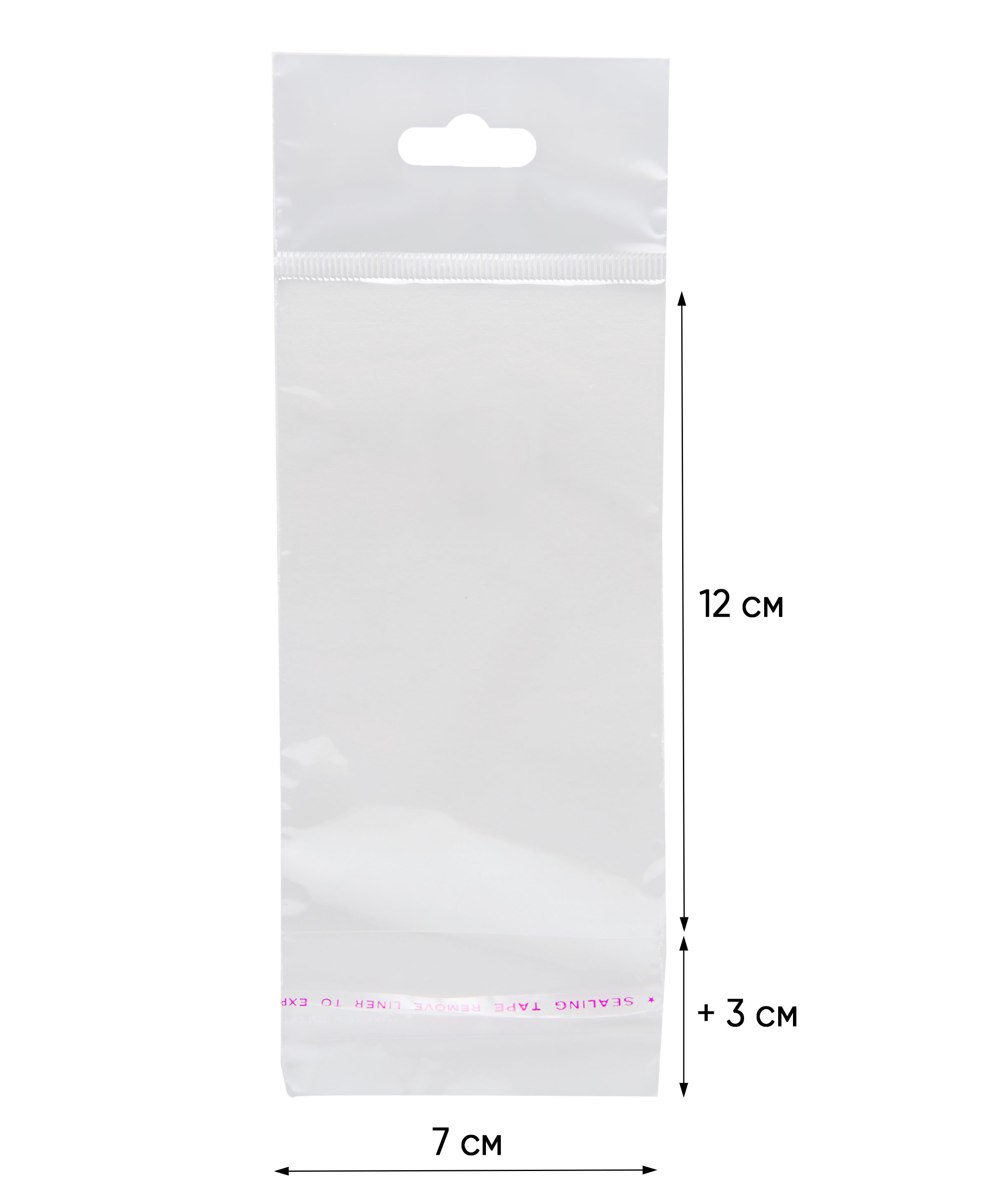 Пакеты БОПП 7х12 см / 7*12 7 12 / со скотч-клапаном 3 см, с европодвесом, толщиной 30 мкм.