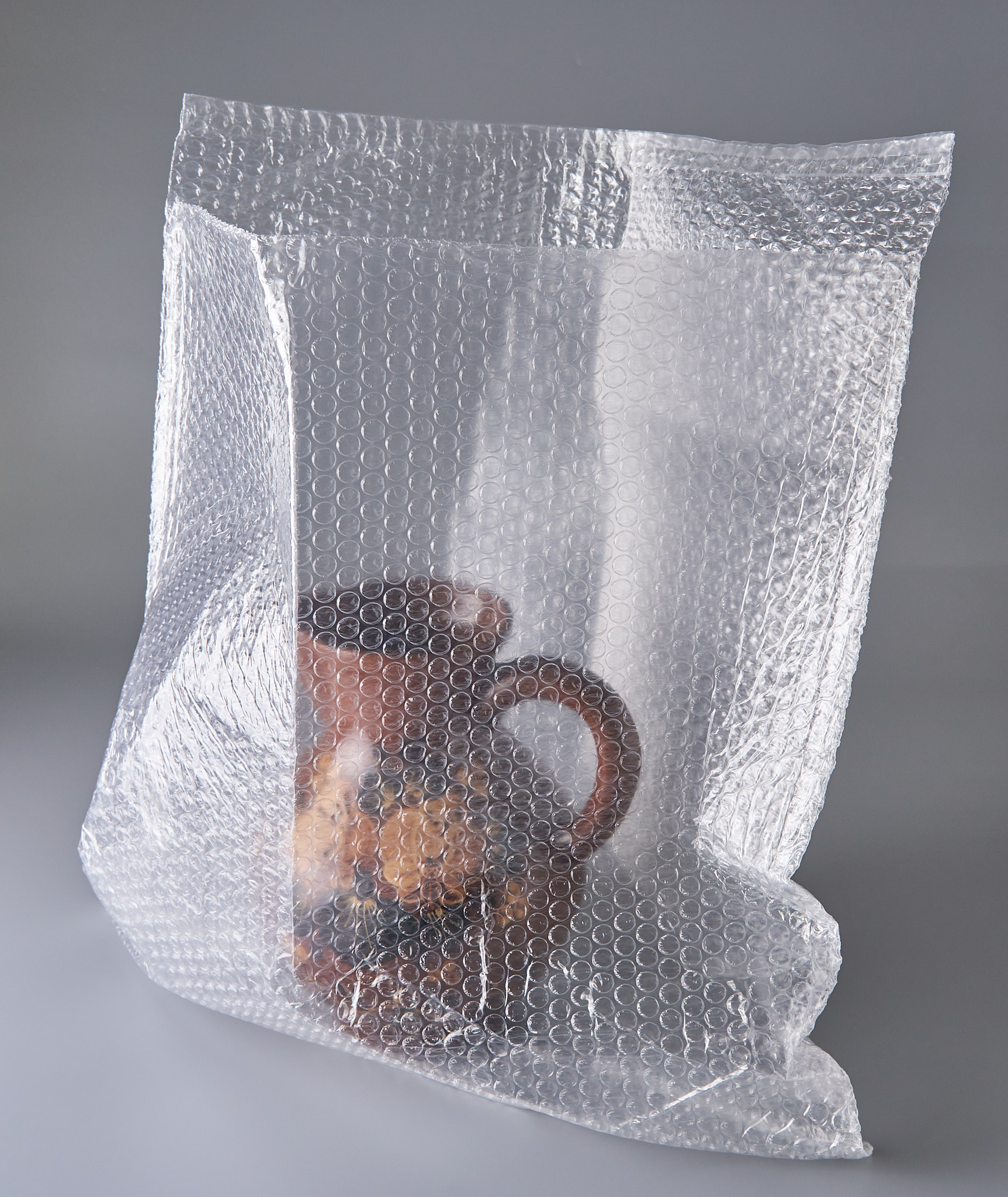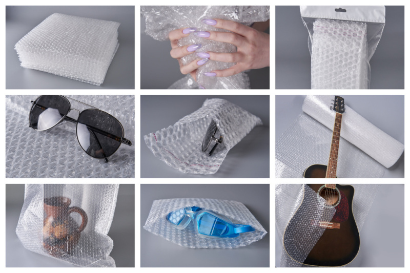 Пакеты изготовлены из прозрачной воздушно-пузырьковой (пузырчатой) пленки, которая представляет собой полимерный упаковочный материал, верхний слой которого — пузырьки, наполненные воздухом, а нижний — гладкая пленка. Благодаря своей пористой объемной структуре может быть использована для упаковки любых товаров, в том числе и хрупких — стекла, техники, предметов искусства.