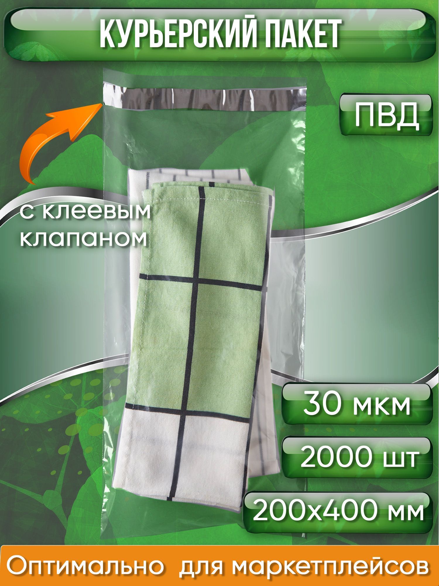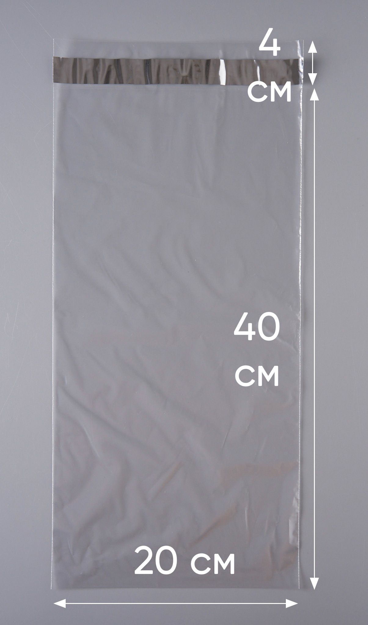 Размер: 200 х 400 + 40 мм клеевой клапан с мертвым скотчемТолщина пленки: 30 мкм