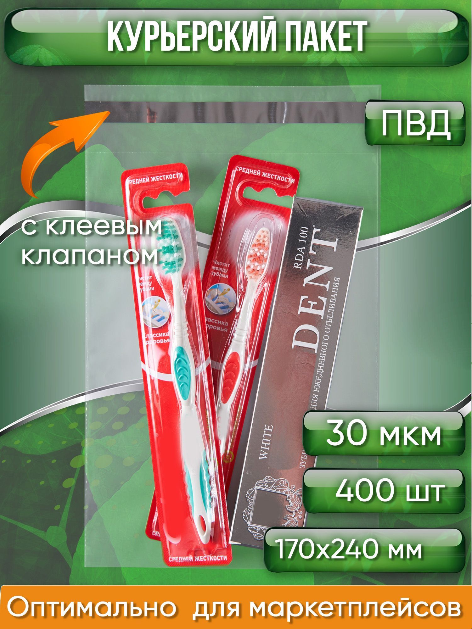 Размер: 170 х 240 + 40 мм клеевой клапан с мертвым скотчемТолщина пленки: 30 мкм