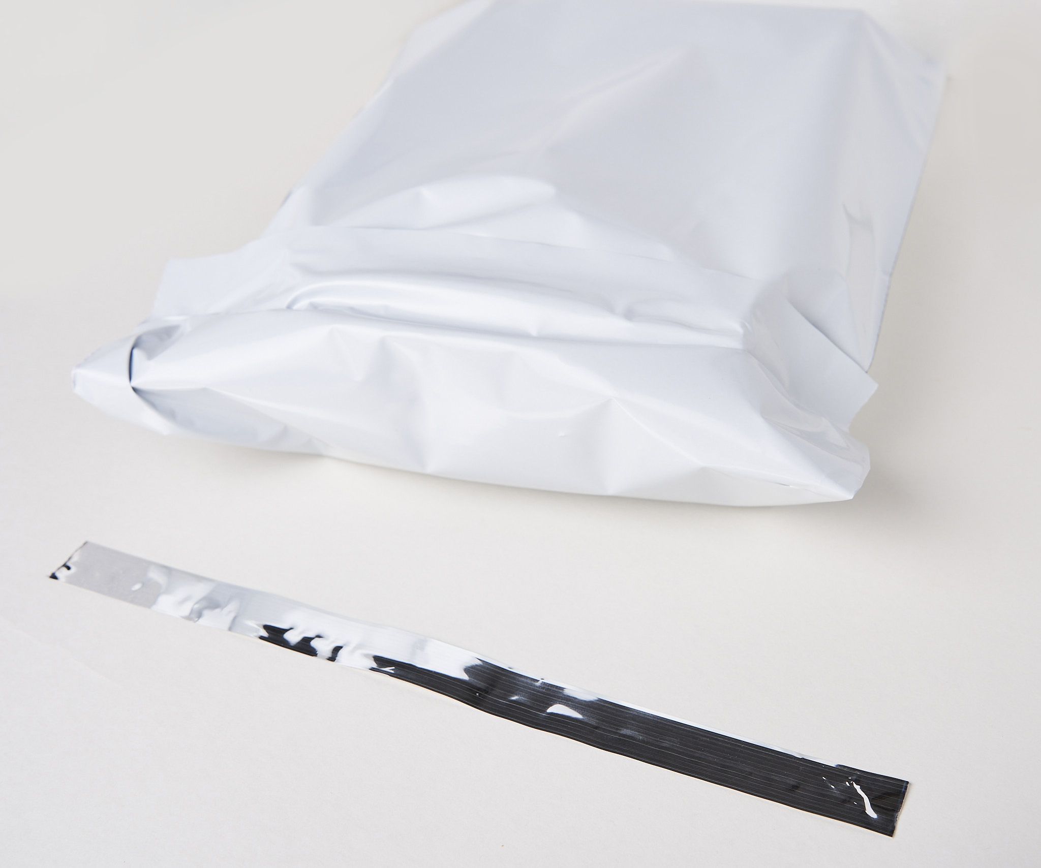 Верх пакета содержит специальный клеевой клапаном, длиной 45 мм. При закрытие пакета, клеевой слой намертво скрепляет полиэтилен, и вскрыть упаковку можно лишь повредив ее структуру.